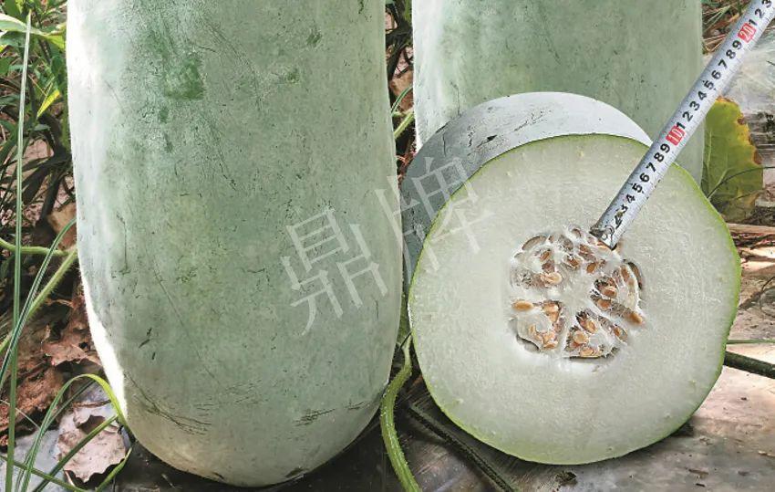 二是,看瓜不大,卻鐵重,單果重可達(dá)25-30斤,原因是瓜腔小,果肉厚實。一般粉皮冬瓜的肉厚只有4~5厘米,而“大肉紅燒”冬瓜的肉厚可達(dá)8厘米,這是粉皮冬瓜中見不到的品種。