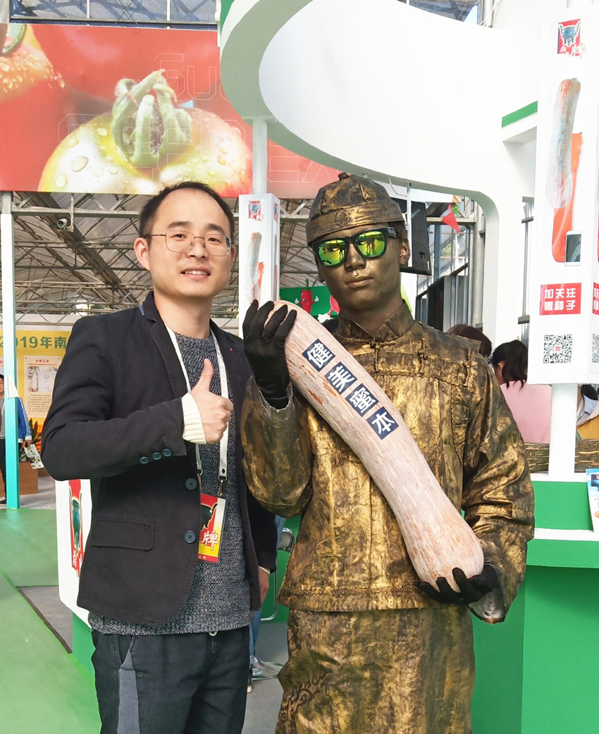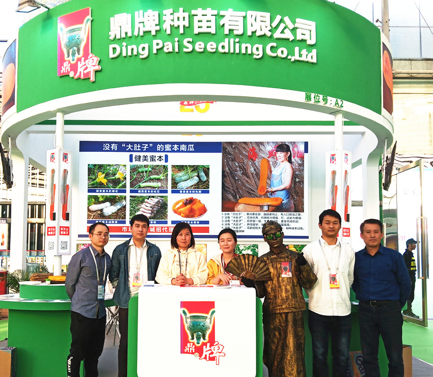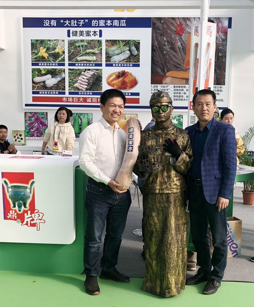 活動現(xiàn)場,鼎牌展位(A2)在展示大廳脫穎而出??蜕虃冏叩秸古_前紛紛停下腳步,被鼎牌獨(dú)創(chuàng)的“沒有大肚子的健美蜜本南瓜”所吸引。