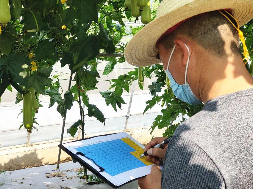 3位專家有條不紊,先后對(duì)苦瓜、絲瓜、南瓜進(jìn)行了初評(píng)。在評(píng)選中,經(jīng)常展開(kāi)討論,各抒己見(jiàn)。在遇到表現(xiàn)好的品種時(shí),還忍不住拍照和記錄。