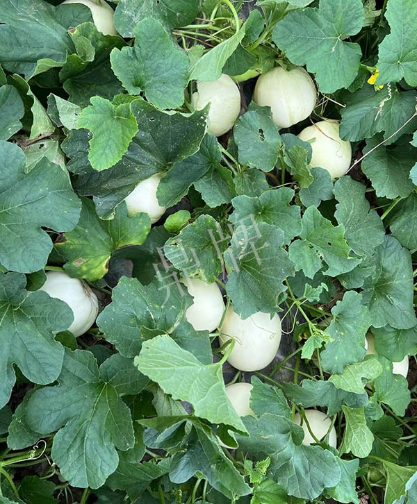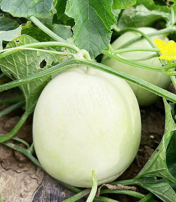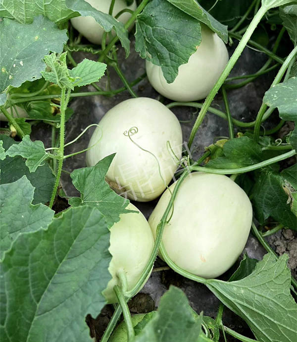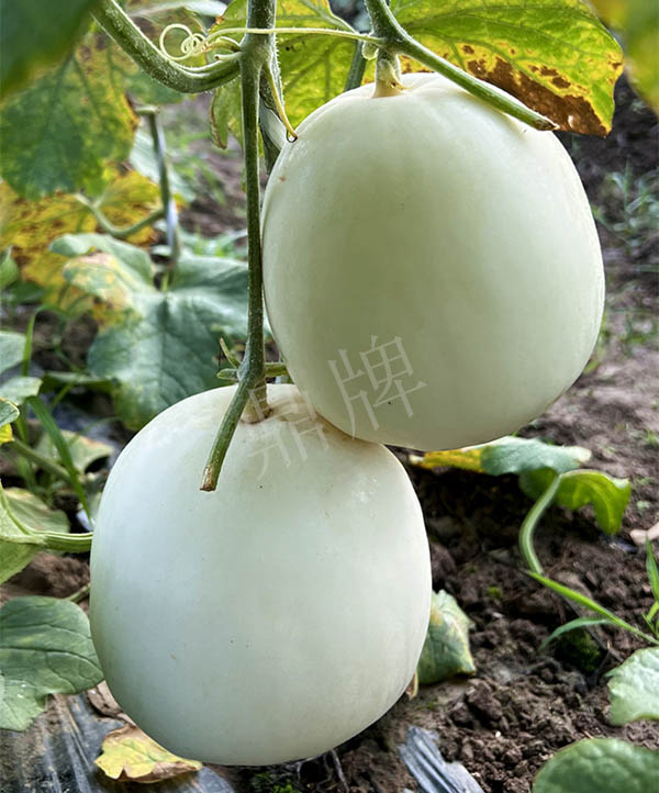 “雪奶香1號(hào)”的提高種。果皮、果肉純白色;果肉增厚,尤其是奶香更濃,甜度高達(dá)19.5度,單瓜重600克左右。爬地1~2袋/畝、吊蔓5袋/畝。